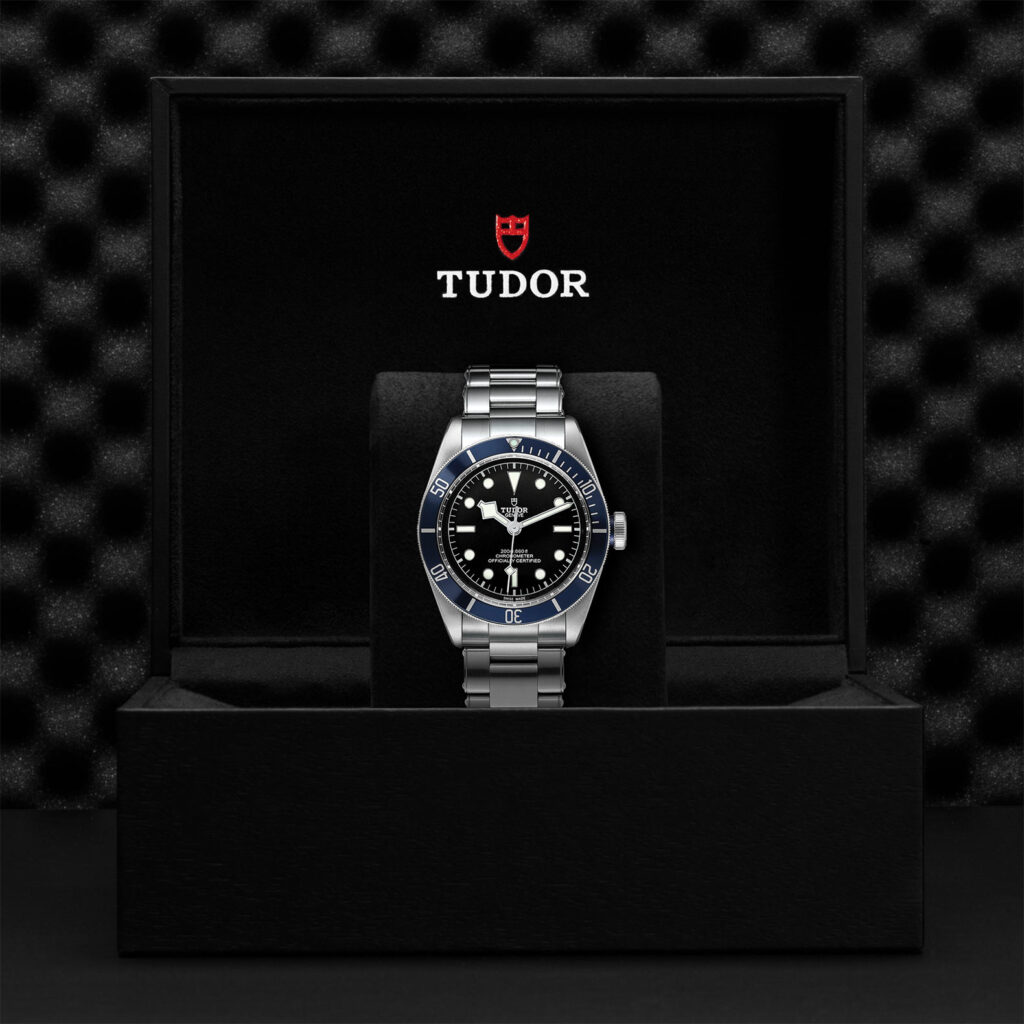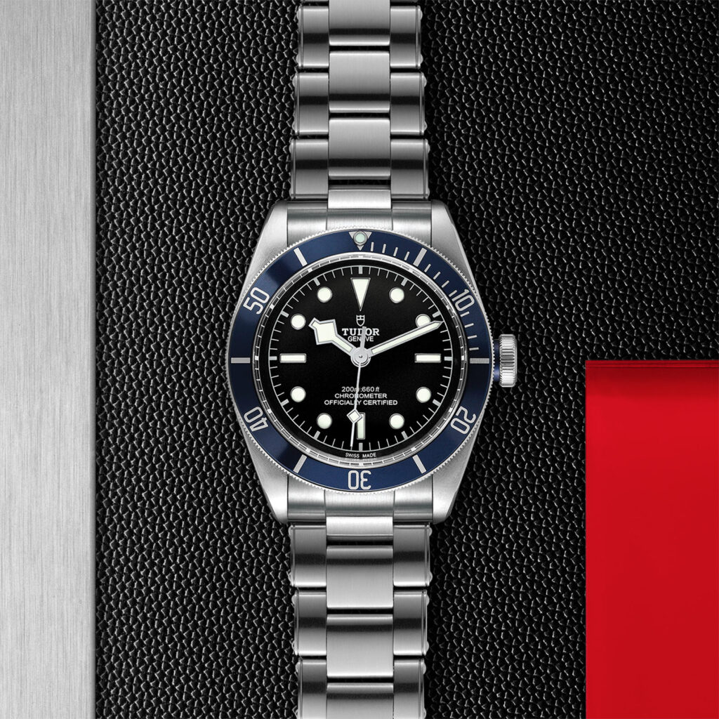 Bezel: Steel unidirectional rotatable bezel with disc in matt blue anodised aluminium